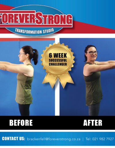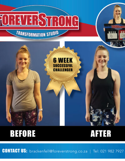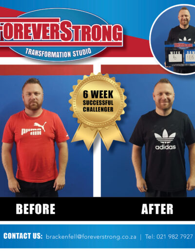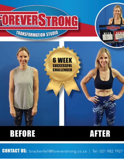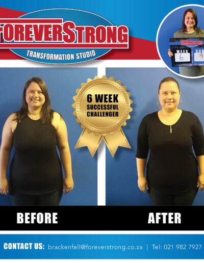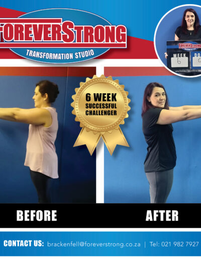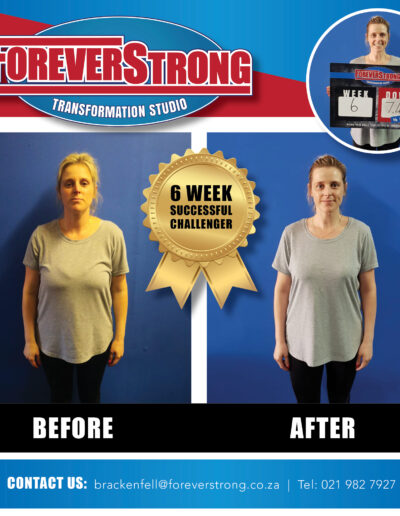“To shake off the lockdown blues, I entered the Foreverstrong Brackenfell 6 weeks challenge. Fast forward just over 6 weeks and reflecting back at the experience… The best decision I made for 2020. Dropped 9.8kg over the 6 weeks.